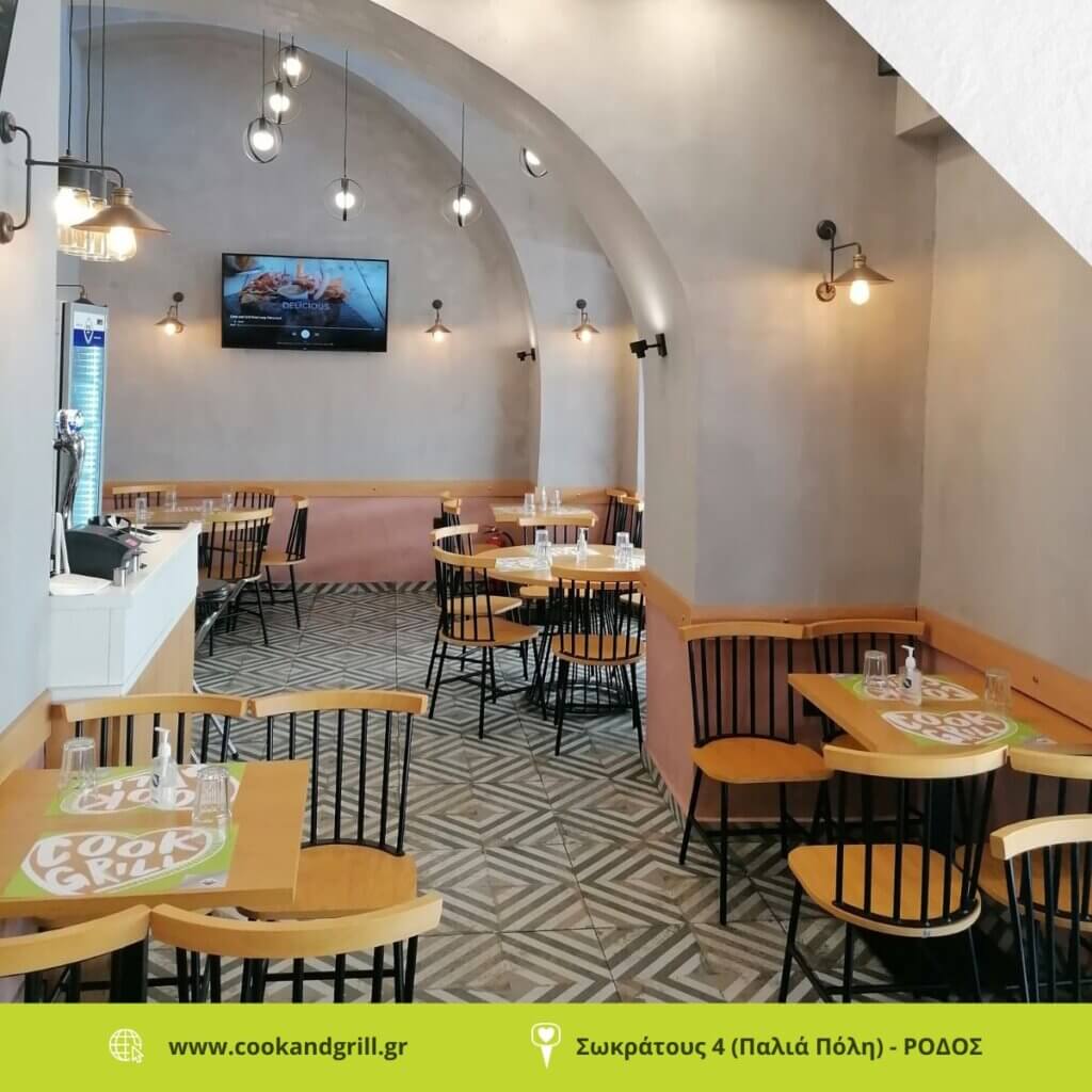 Το Cook and Grill αποτελεί έναν φιλόξενο χώρο όπου μπορούν όλοι να απολαύσουν μοναδική ποικιλία γεύσεων! Εμπνευσμένο από την ελληνική, παραδοσιακή και μεσογειακή κουζίνα, προσφέρει αμέτρητες επιλογές λαχταριστών πιάτων για κάθε μέρα, κάθε ώρα και κάθε ηλικία.