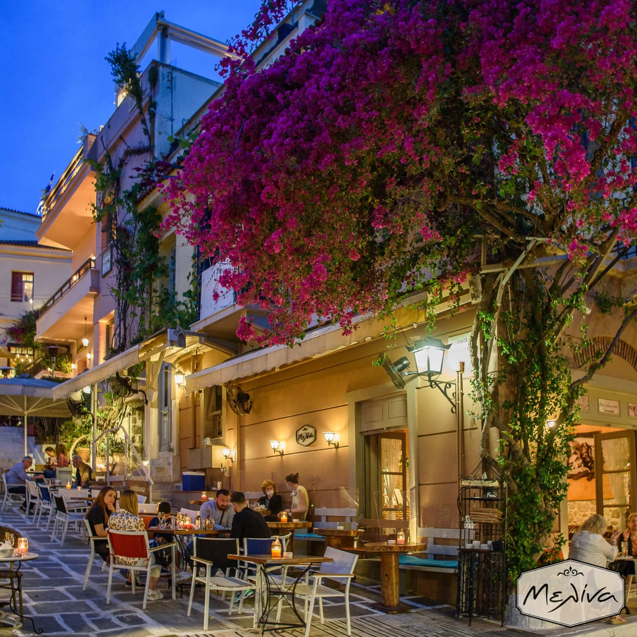 Ένα κλασικό γαλλικής έμπνευσης Cafe Bistro, προς τιμήν της θρυλικής ηθοποιού και σκληρής πολιτικού Μελίνας Μερκούρη. Προσφέρει ιταλικό καφέ υψηλής ποιότητας, ποτά, σνακ και μερικά επιλεγμένα πιάτα τοπικής και ξένης κουζίνας. Μια 20χρονη βουκαμβίλια έχει διακλαδιστεί σε όλη τη σκηνή παρέχοντας κάλυψη ή αισθητική ευκολία ανάλογα με την εποχή. Ένα μικρό κόσμημα στους πρόποδες της Ακρόπολης.
