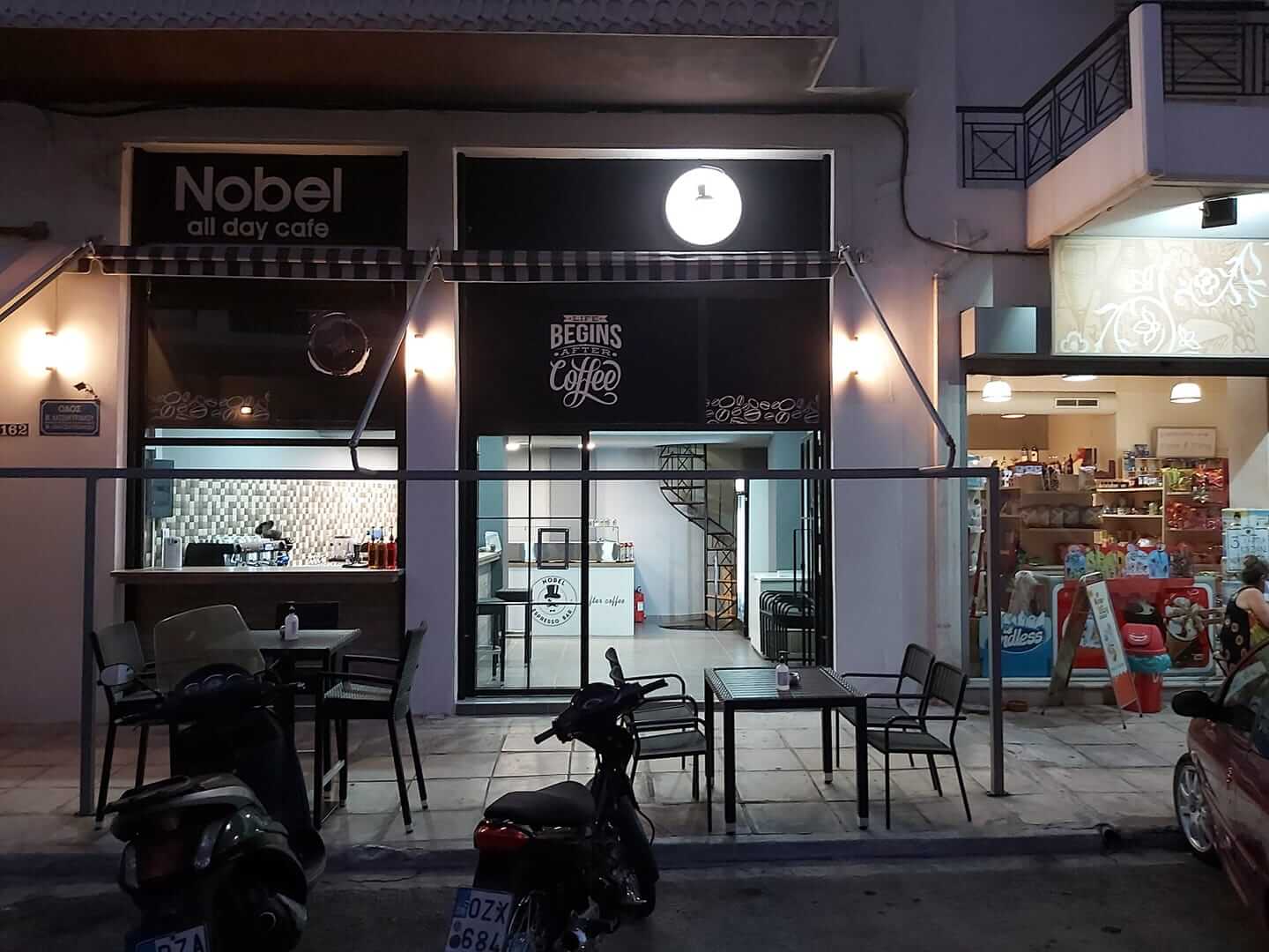 Η μέρα Ξεκινάει με καφέ… Και ακόμα καλύτερα με έναν Καφέ για NOBEL Κάθε Σαββατο σας περιμένουμε να δοκιμασετε τις γεύσεις του grill μας . Πανσέτες , μοσχαρίσια λουκάνικα , κεμπαπ, χοιρινά καλαμάκια ,μπιφτέκια .